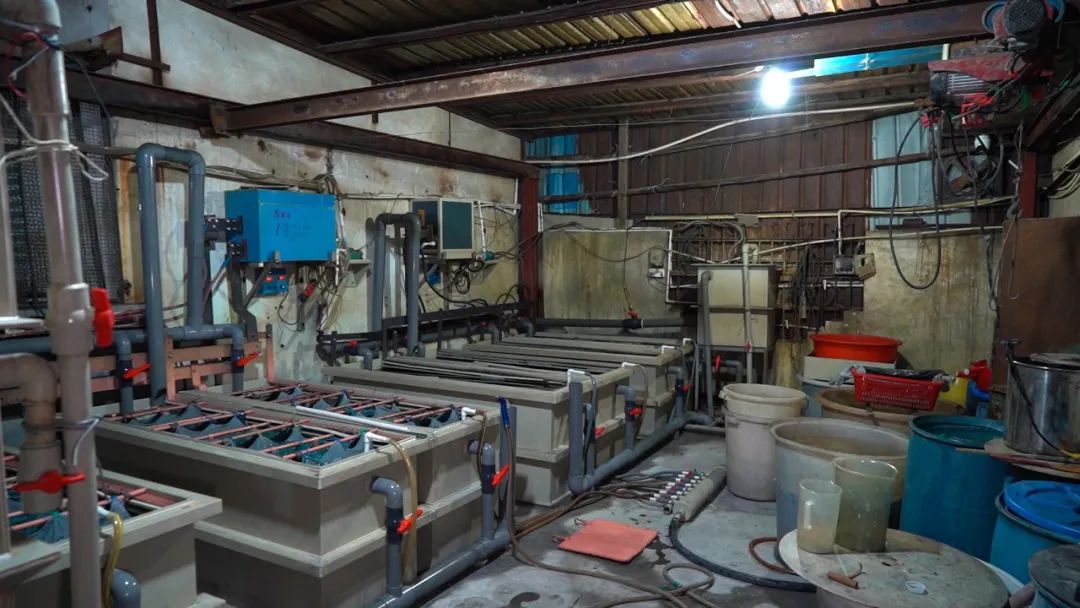該作坊為逃避監(jiān)管藏匿在居民住宅區(qū)內(nèi)。接報(bào)趕到現(xiàn)場(chǎng)的沙田生態(tài)環(huán)境分局共同開(kāi)展執(zhí)法檢查。經(jīng)查,該作坊主要通過(guò)銅廢料的電解加工來(lái)提取銅產(chǎn)品。在未經(jīng)生態(tài)環(huán)境部門(mén)審批同意的情況下,擅自開(kāi)工建設(shè),主體工程已投入使用,設(shè)有電解、吸附、清洗工序及電解槽12個(gè)、塑料桶一批等生產(chǎn)設(shè)備?,F(xiàn)場(chǎng)檢查時(shí),電解、吸附等工序正在使用,電解、吸附等工序未配套廢水廢氣污染防治設(shè)施。