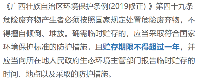 關(guān)于危廢產(chǎn)生單位的危廢貯存時限問題的咨詢